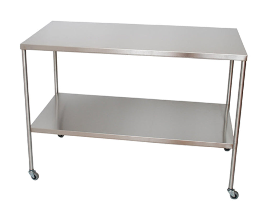 Stainless Steel Instrument Table w/ Double Shelves. 24" D x 48" W