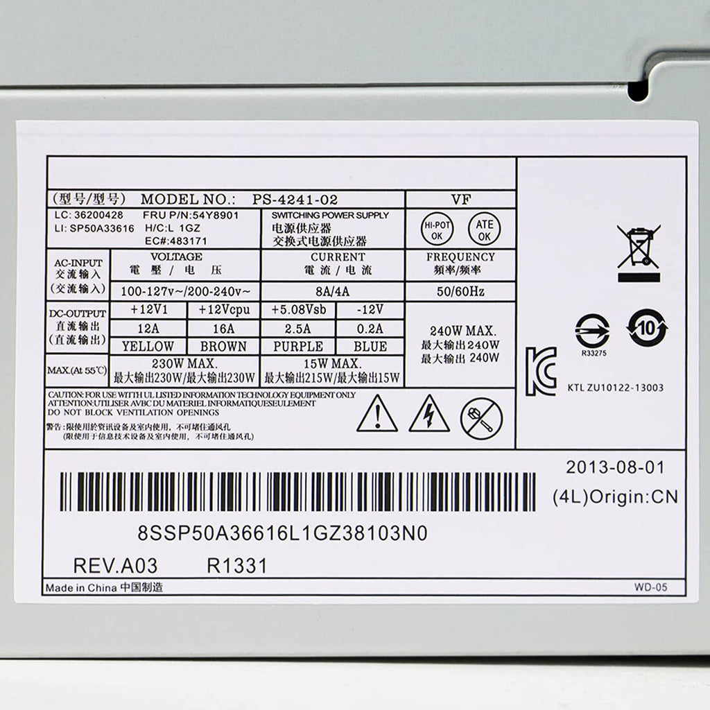 240W Power Supply Compatible with Lenovo ThinkCentre M73 M78 M82 M83 M93 E73