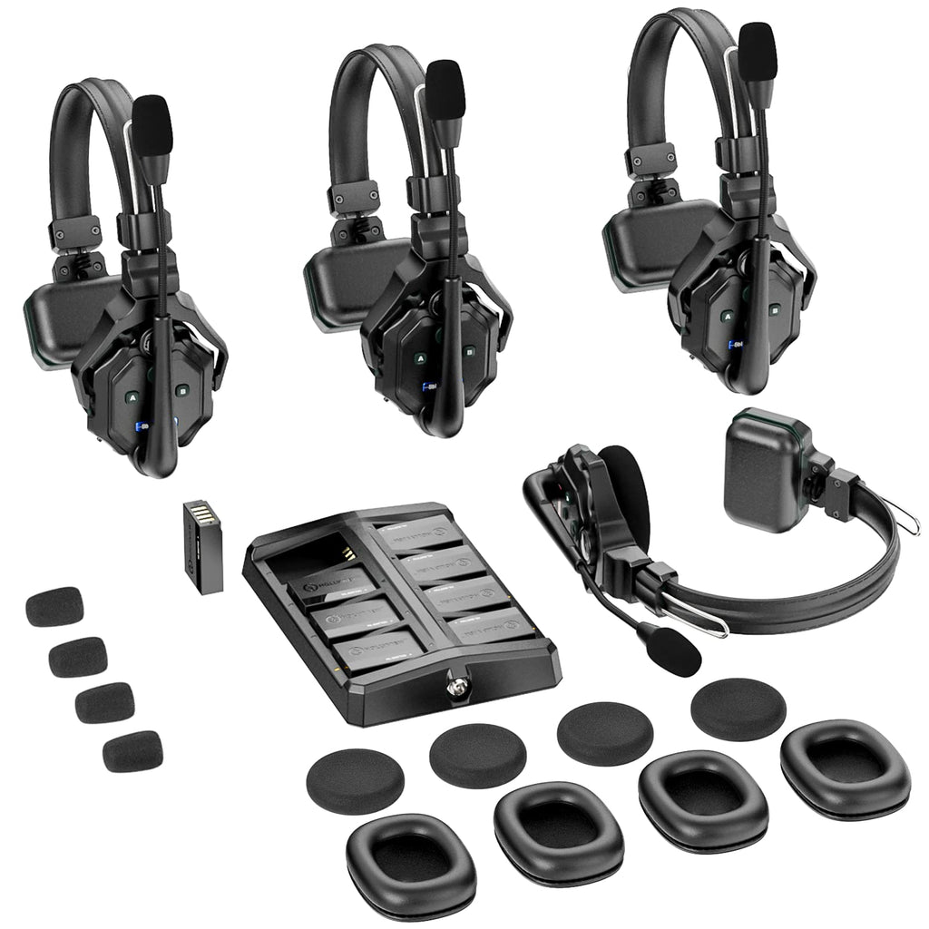 Hollyland Solidcom C1 Wireless Headset Intercom System 4-Person Full Duplex 1100ft Team Communication Group Talk Single-Ear Headset with 1 Master & 3 Remote Headsets