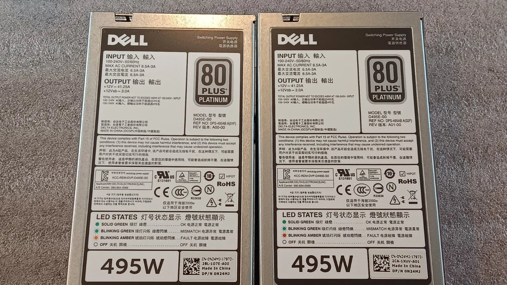 Dell PowerEdge 80 Plus Platinum 495W Platinum Power Supply PSU 0N24MJ