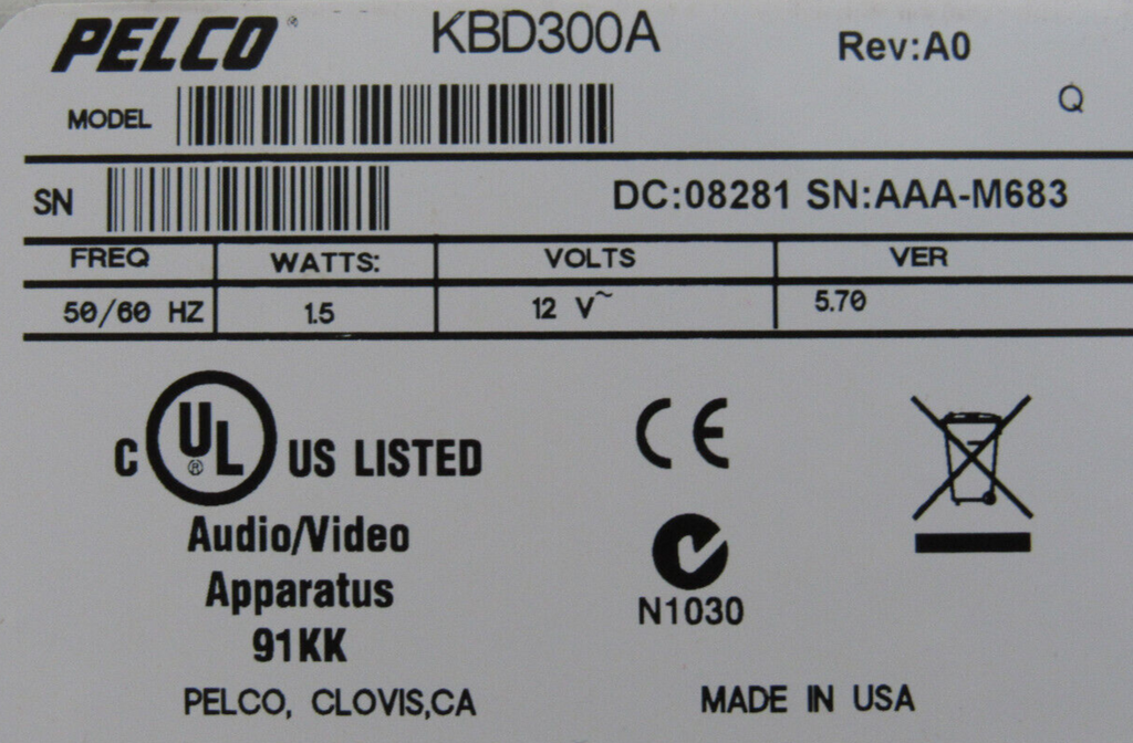 PELCO KBD300A KEYBOARD VARI-SPEED WITH JOYSTICK