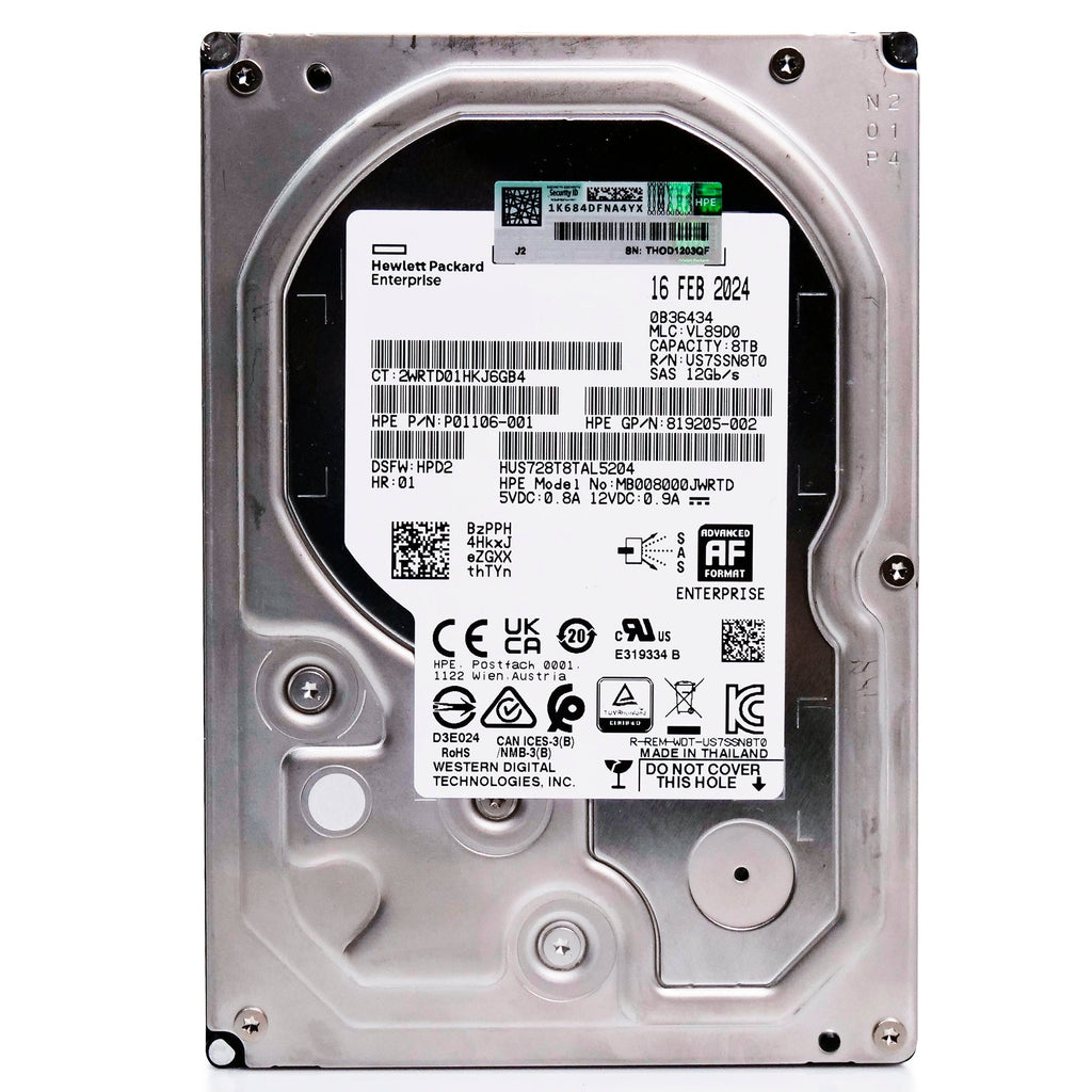 Western Digital/HP Ultrastar DC HC320 HUS728T8TAL5204 8TB 7.2K RPM SAS 12Gb/s 512e 3.5in Recertified Hard Drive